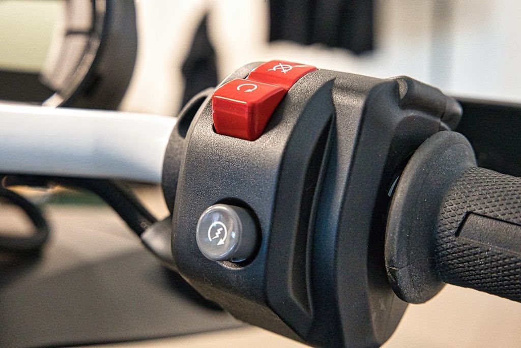-Verbesserter Schutz und Komfort für den Fahrer, mit Handschutz, Rally- Lenker und Komfortsitz, einstellbaren Anti- Rutsch-Fußrasten und verbesserter Federung: KYB Gasdruckstoßdämpfer vorne und hinten mit Fernverstellung und Radaufhängung mit zusätzlichem Federweg von 2,5 cm