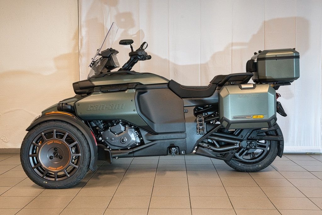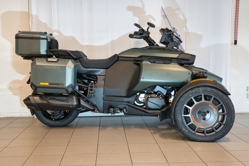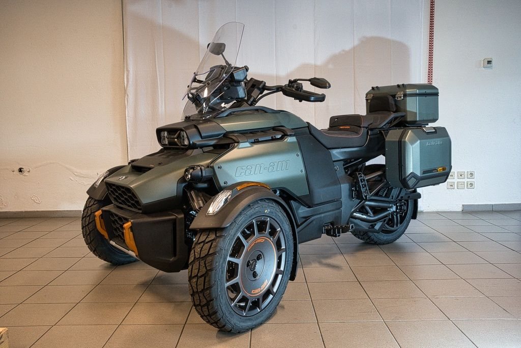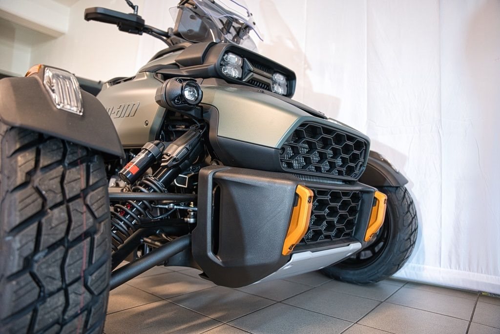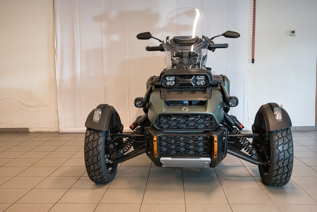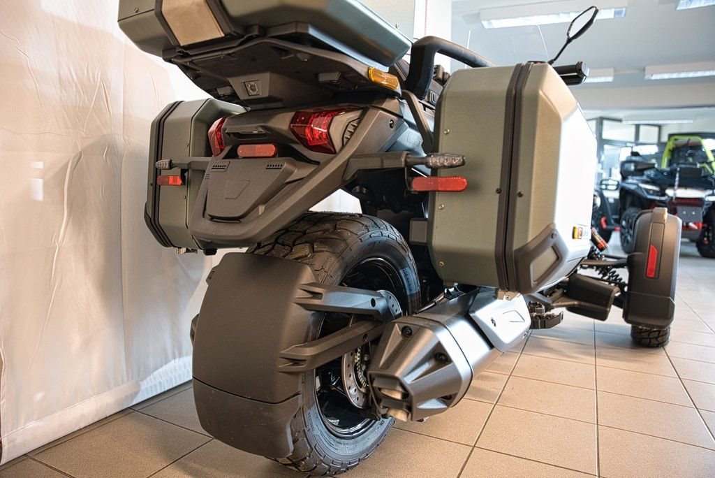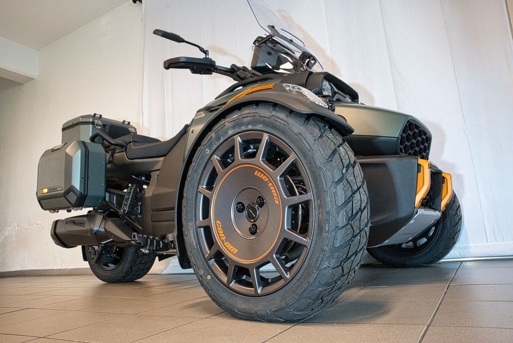 abenteuerorientiertes Dreirad (Spyder), konzipiert für Straße und leichtes Gelände. Angetrieben von einem 115 PS (86 kW) starken 1,3-Liter-Rotax-Motor und einer Halbautomatik, bietet es eine aufrechte Sitzposition, hochwertige Ausstattung (Sitzheizung, Koffer) und ein intelligentes Fahrwerk.